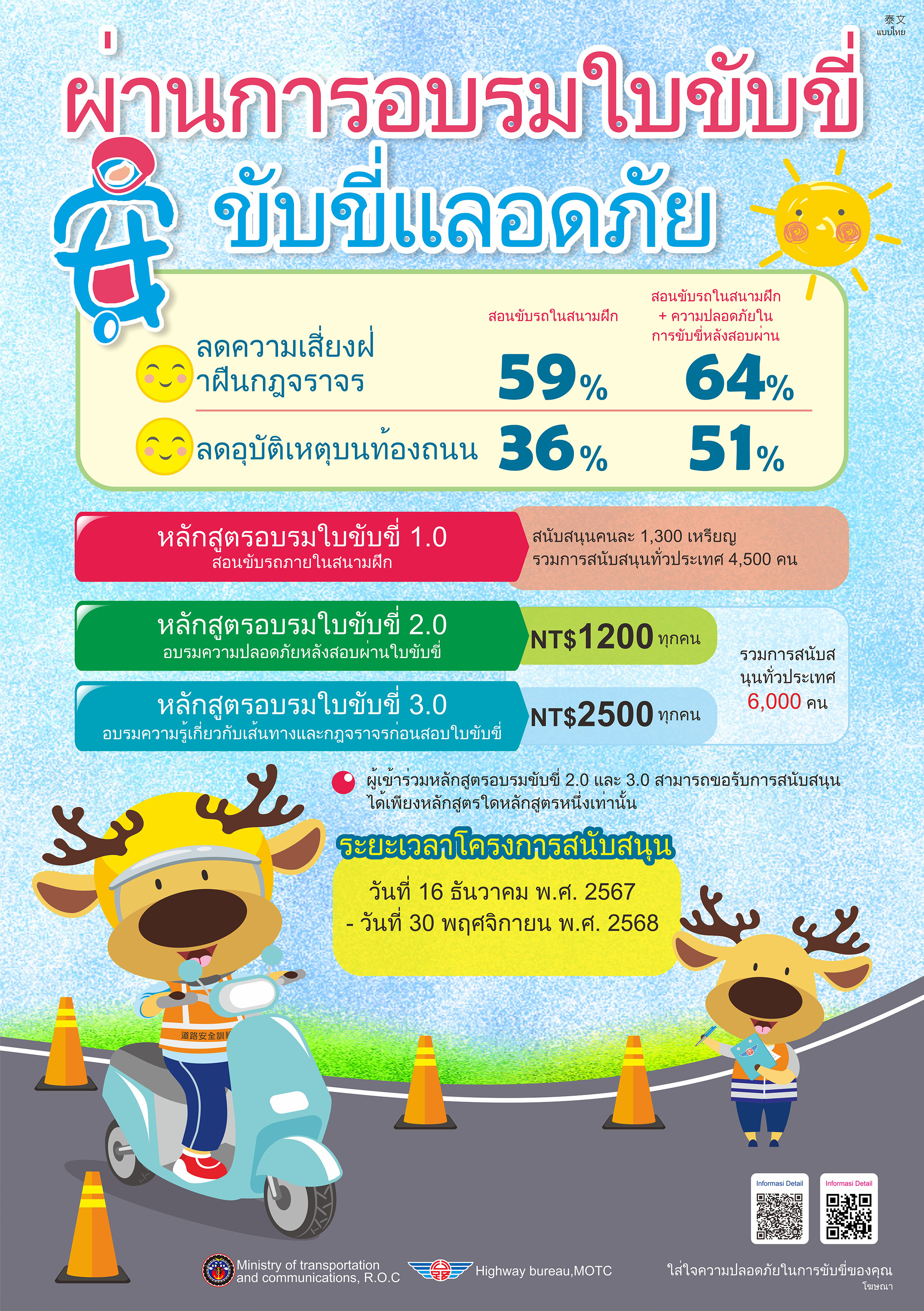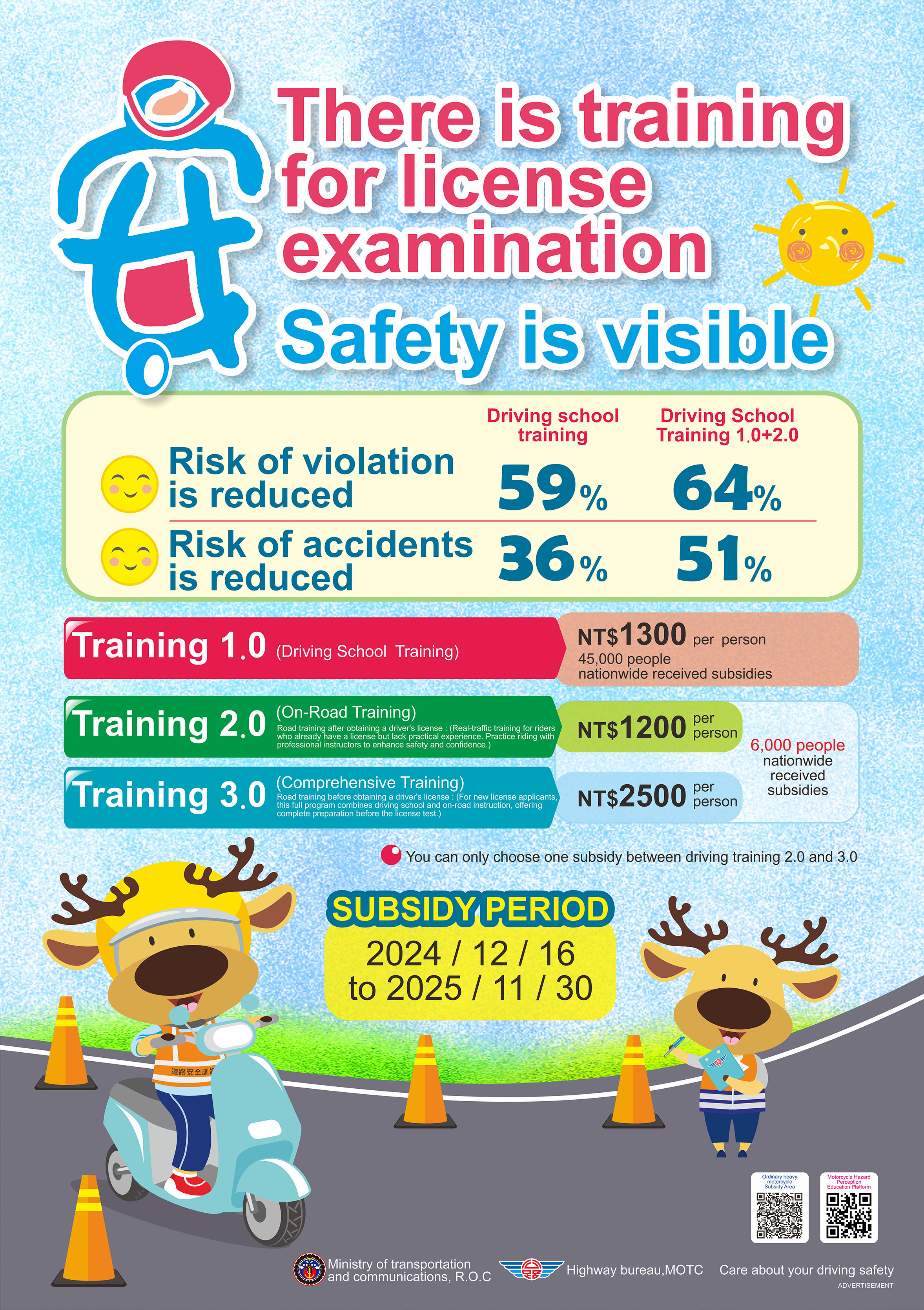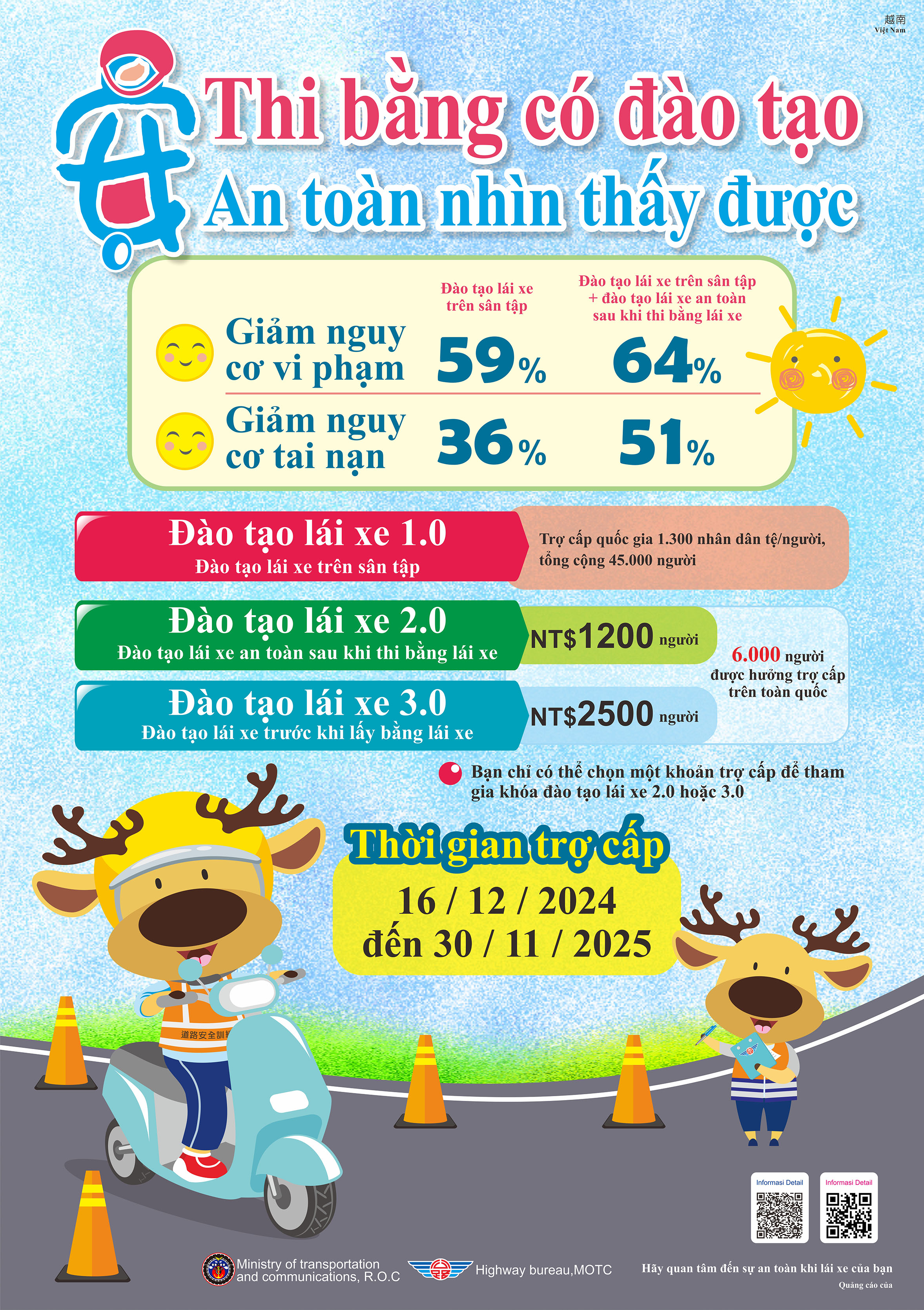 三、為強化學生機車安全駕駛觀念,降低交通意外之風險,請貴校運用各種管道加強宣導,另請鼓勵外籍生參加機車駕訓班,建立正確駕駛觀念與培養道路駕駛能力。