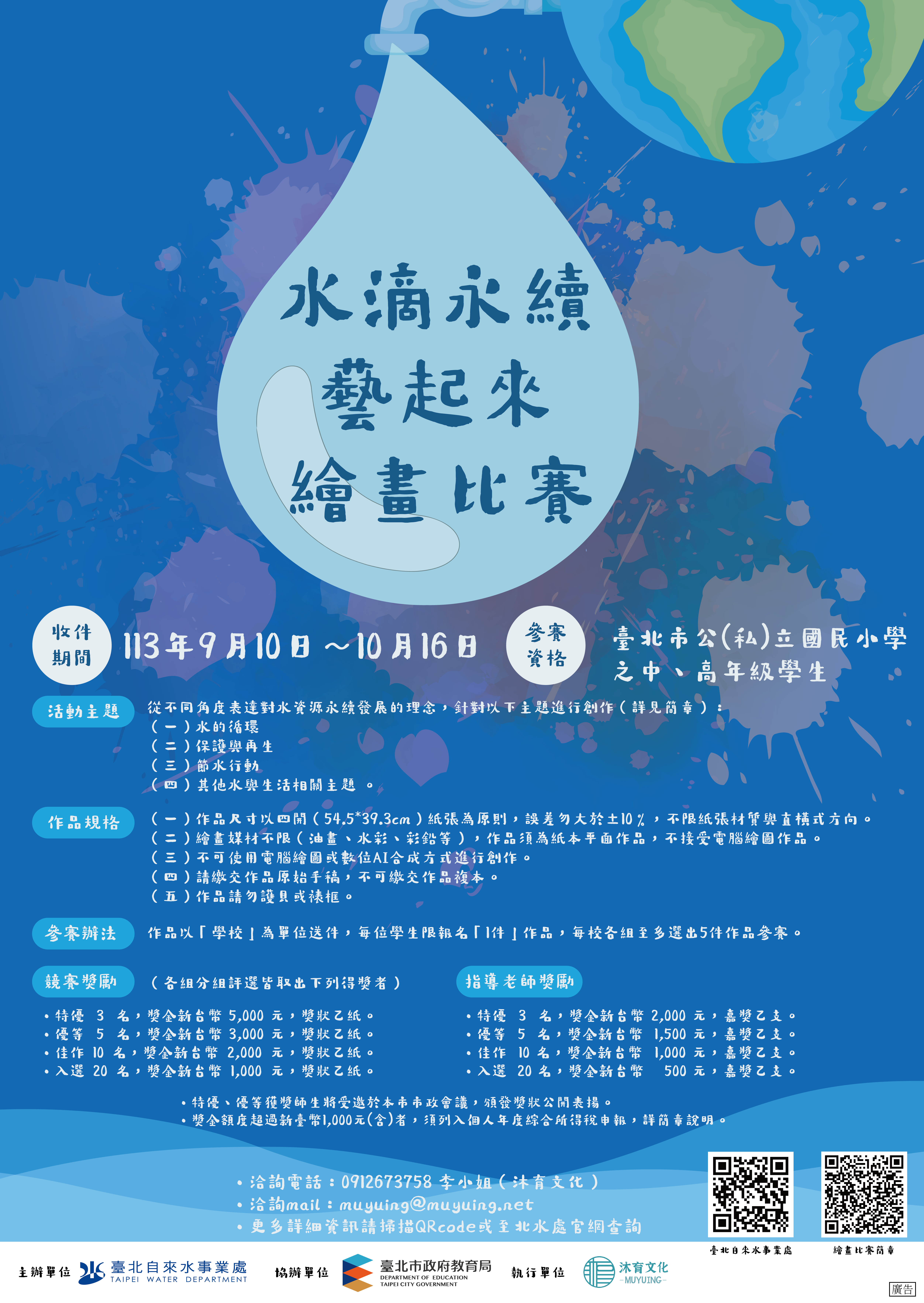一、為提升節水教育推廣成效,引起更多學童對水資源永續發 展的關注,旨揭比賽收件截止日自113年10月9日延至113年 10月16日。
