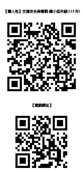 三、旨案活動懶人包網址(https://reurl.cc/L5mWrx)、遊戲網址(https://lograde.yam.com/)及QRCode(詳附件),請學校協助運用多元管道,如校網、FB、YouTube、辦公場所LED等方式擴大宣導,以強化兒童道路交通安全觀念,提升交通安全。