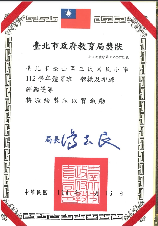 恭喜本校體育班榮獲112學年度臺北市政府教育局體育班評鑑優等!
