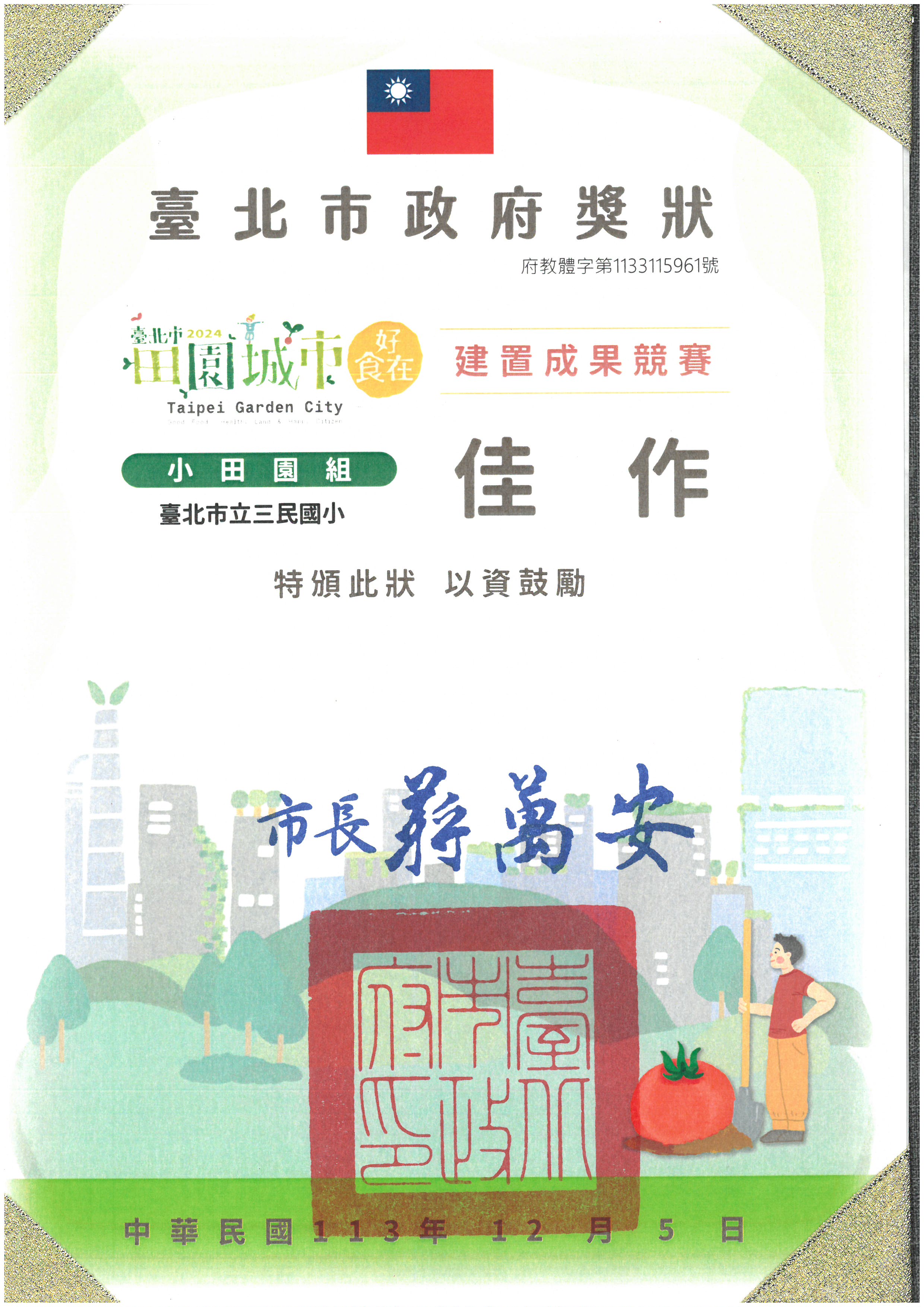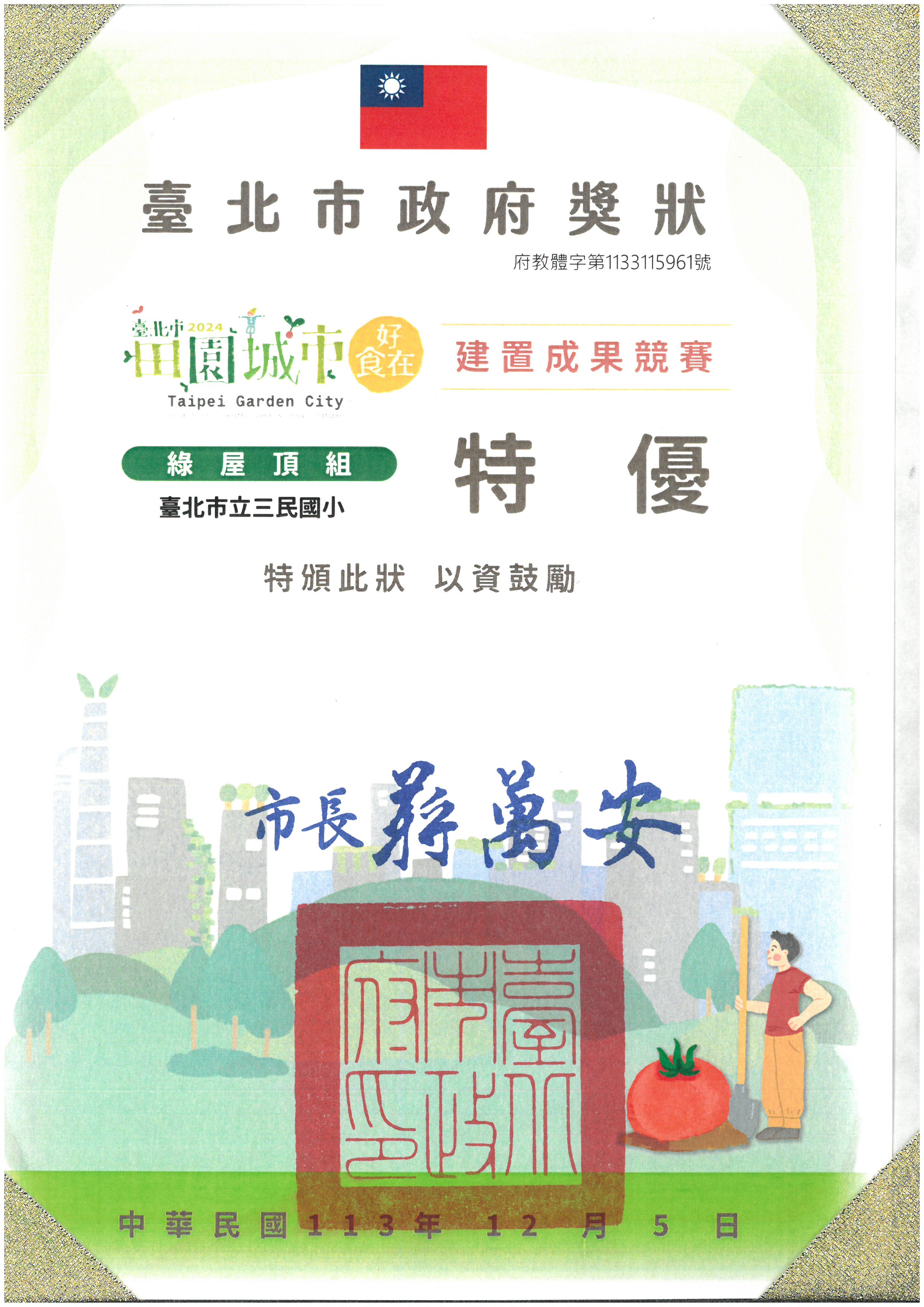 恭喜本校榮獲112學年度田園城市綠屋頂組特優,小田園組佳作