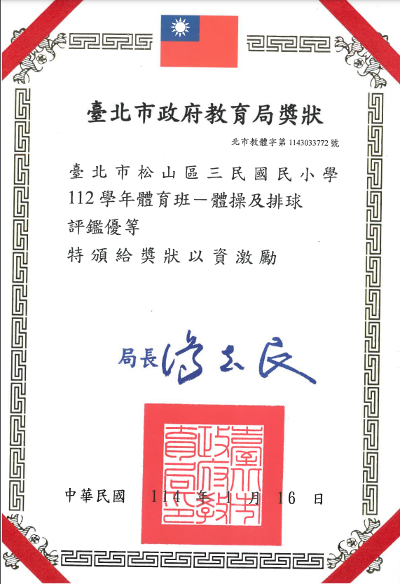恭喜本校體育班榮獲112學年度臺北市政府教育局體育班評鑑優等!