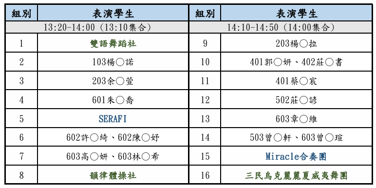 一、集合地點:學務處旁穿堂