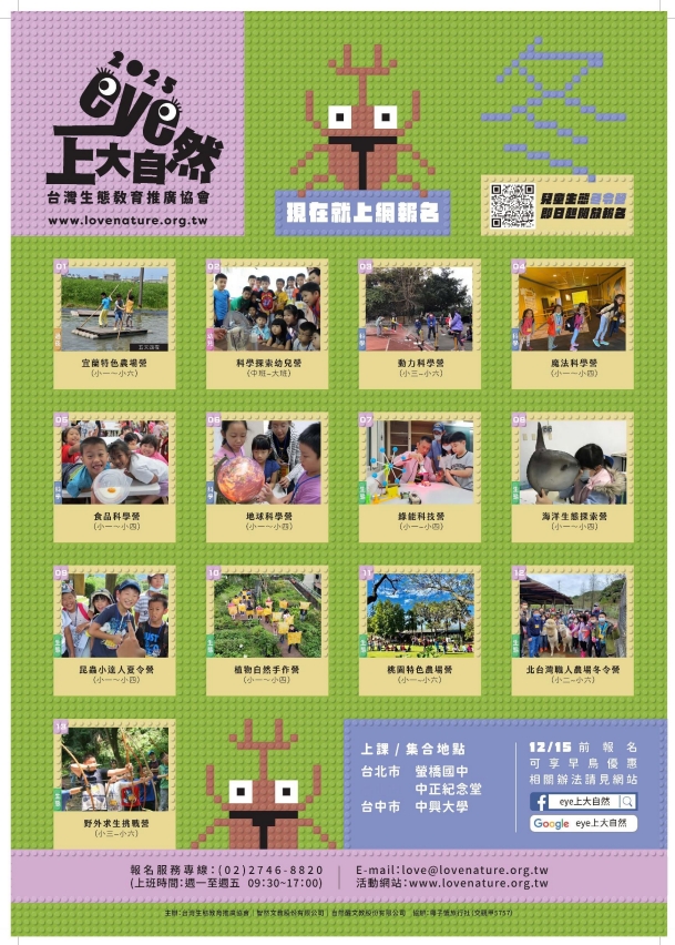 二、2025寒假兒童生態冬令營活動網址為 https://www. lovenature.org.tw/,歡迎線上報名。