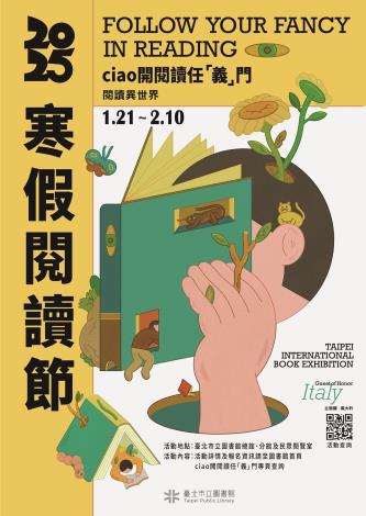 一、為推廣兒童及青少年閱讀,特於寒假期間114年1月21日至2月10日於總館、分館及民眾閱覽室結合台北國際書展規劃閱讀活動。配合第33屆台北國際書展「閱讀異世界」,以「ciao開閱讀任『義』門」為主題,介紹義大利的歷史地理、世界遺產及文化等特色。