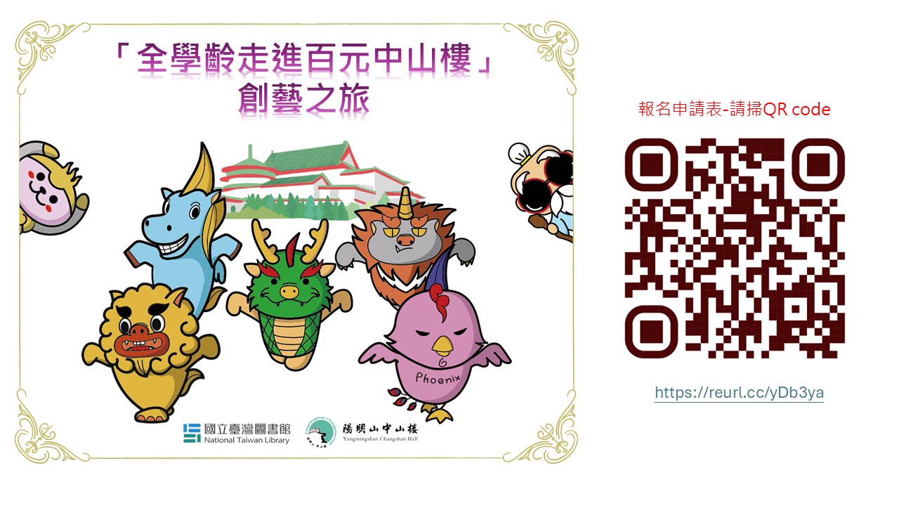 (四)申請方式:採線上預約申請(https://reurl.cc/yDb3ya) 報名申請QR Code(附件)。 四、洽詢電話:(02)2861-6391 分機 102 樓文甯編輯(電子郵 件saralou@mail.ntl.edu.tw)