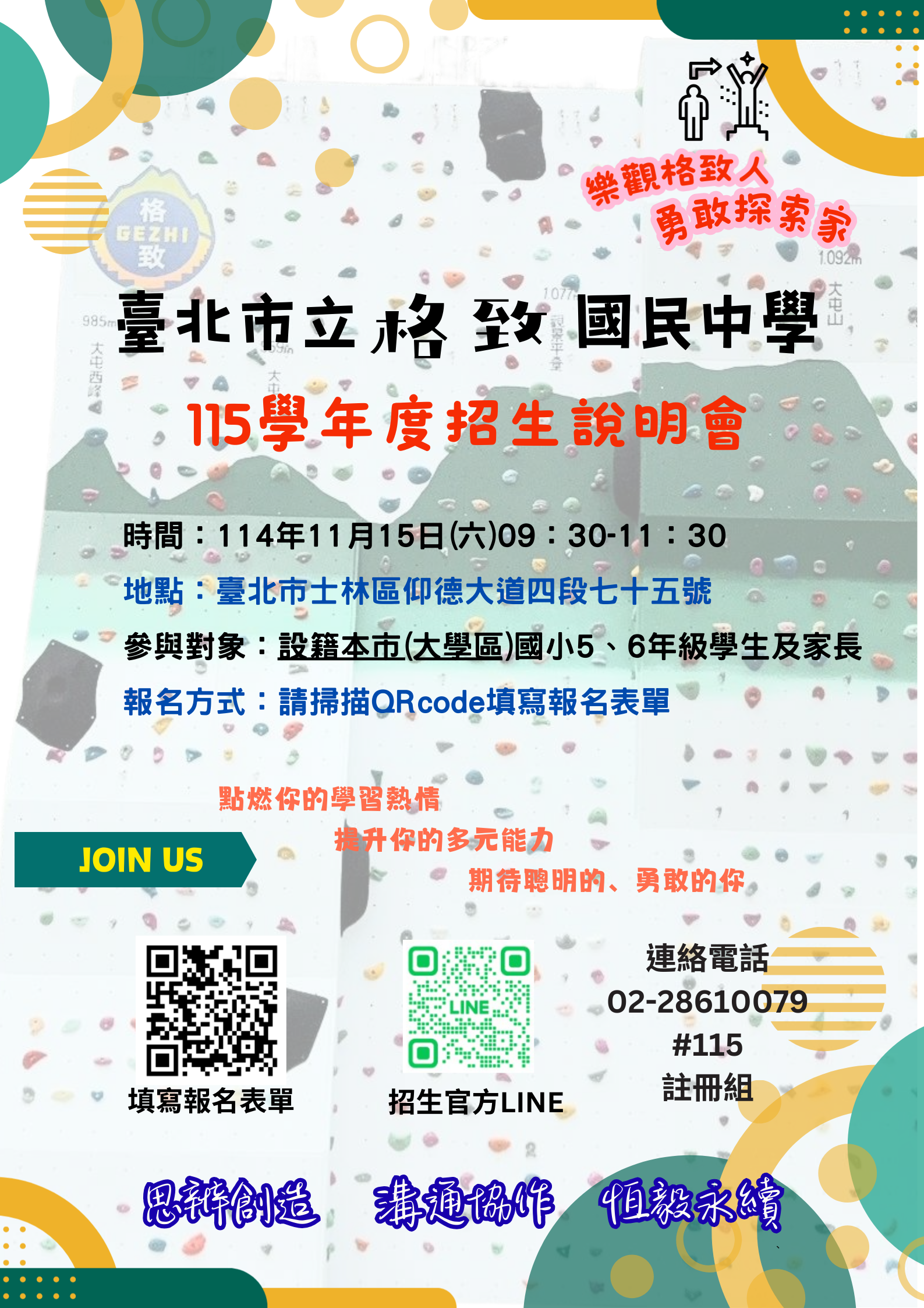 報名方式:敬請有意參加招生說明會之學生及家長,於114年11月9日(星期日)前登錄Google表單 (https://forms.gle/NhKUo9U7vXuqhD9g9)完成報名。